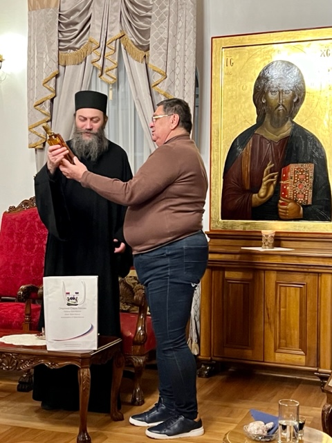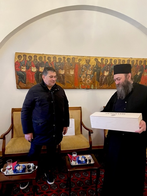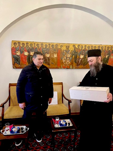 Такође, са делегацијом је био и председник Удружења Срба “Мир,слога, стабилност”, из Скопља, Господин Димитрије Недић, који је добио благослов манастира да може организовано по унапред утврђеном календару у години, да доводи по један аутобус поклоника из данашње Северне Македоније (Србе и Македонце заједно), где је до Другог Светског рата манастир Хиландар имао 27 метоха. То говори да се Царска Лавра Немањичка бринула о духовном животу православног народа на овом простору.